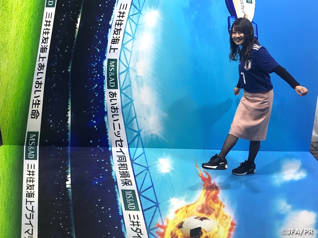 MS&ADブースではトリックアート写真を無料で撮ることができます。私も撮ってもらったのですが、サッカー未経験者であることがバレバレなぐらいのポージングになってしまいました。笑