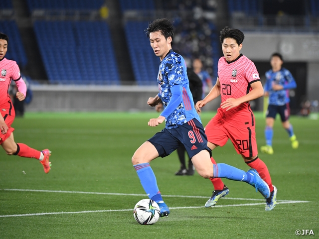 日本代表としてピッチに立つのはサッカーを始めた頃からの夢でしたし、日韓戦というすごく歴史のある、日本にとって負けられない戦いでデビューできたのはすごく嬉しいです。自分の特長はゴールのにおいがするところに入っていくことだと思っているので、あのシーンも守田選手からああいう感じのボールが来るようなイメージだったので、あとは枠に入れることだけを意識して打ちました。自分のベースの切り替えや球際は、(前所属の)湘南でずっとやってきたことで、攻撃の関わりや今日の得点場面のように、ああいうところに入っていく感覚は川崎でずっとやってきて身についてきたものなので、両方でやっていることが結果になったと思います。