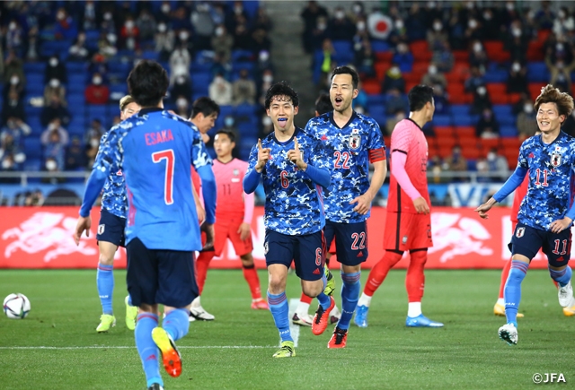 SAMURAI BLUE(日本代表)は3月25日(木)、神奈川県の日産スタジアムで行われた国際親善試合で韓国代表と対戦し、代表デビューのDF山根視来選手(川崎フロンターレ)、MF鎌田大地選手(アイントラハト・フランクフルト)、MF遠藤航選手(VfBシュツットガルト)の得点で3-0と快勝。FW大迫勇也選手(ヴェルダー・ブレーメン)も2得点に絡む活躍で、2021年初戦を白星で飾りました。韓国との国内での対戦では2011年の親善試合以来となる勝利です。