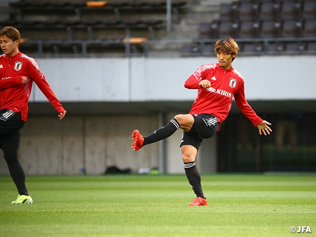 今までにない環境での代表活動で国内組と海外組でコミュニケーションを取る時間が少ないので、チームでうまくいったことや課題を練習で共有することが大事になります。ポジションはトップ下がやりやすいですが、どこでプレーしてもチームのために力になりたい、全力でプレーしたいです。韓国戦では鎌田選手とポジションが被らないように考えてプレーして、うまくいったと思います。押し込む時間帯が多い場合には、僕と僕のサイドのサイドバックの選手との関係性を攻撃的に、サイドバックがもう少し高めにしてもいいのではと思っています。