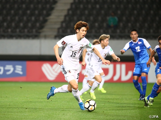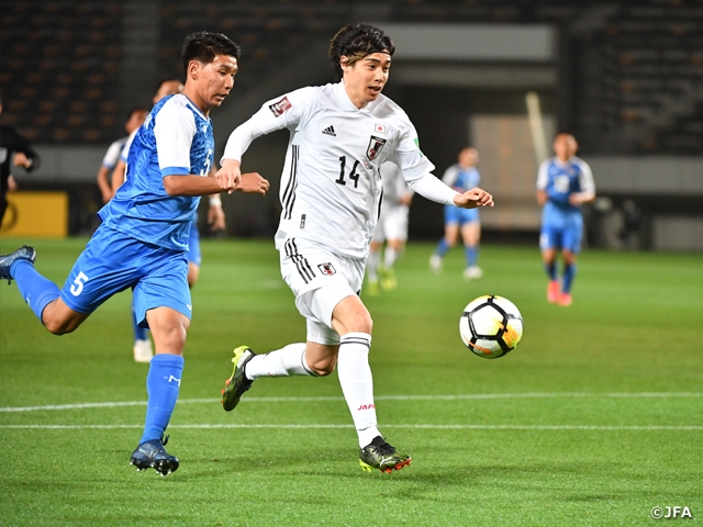 さらに33分には松原選手のパスを受けた伊東選手がスピードに乗ったドリブルで右サイドで相手を抜き去り中央へ折り返し、ゴール前に顔を出したMF守田英正選手(CDサンタ・クララ)が右足で捉えて代表戦初ゴール。39分にはドリブルで持ち上がった伊東選手のパスを受けた松原選手が上げたクロスが、相手DFに当たってゴールに吸い込まれました。