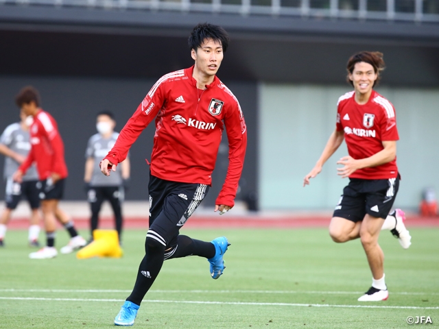 SAMURAI BLUE(日本代表)は5月25日(火)、FIFAワールドカップカタール2022アジア2次予選のミャンマー代表戦(28日、千葉・フクダ電子アリーナ)へ向けた合宿2日目の練習を千葉市内で行い、この日帰国したDF冨安健洋選手(ボローニャFC)、MF久保建英選手(ヘタフェCF)ら10選手が合流しました。