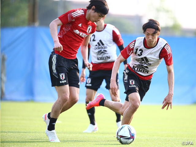 SAMURAIBLUE(日本代表)は6月8日(火)、FIFAワールドカップカタール2022アジア2次予選グループFのタジキスタン代表戦の勝利から一夜明けて、大阪府内のグラウンドで練習を行い、11日(金)に神戸で行われるキリンチャレンジカップ2021のセルビア代表戦へ向けて軽めの内容で調整を行いました。