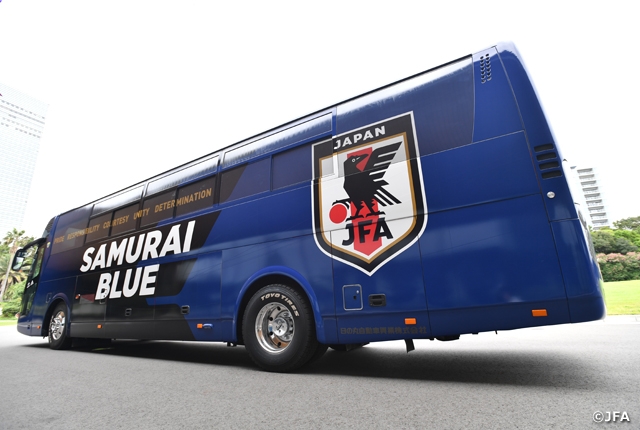 SAMURAI BLUEをはじめとする各カテゴリーの日本代表チームが移動時に使用する日本代表オフィシャルチームバスが完成しました。