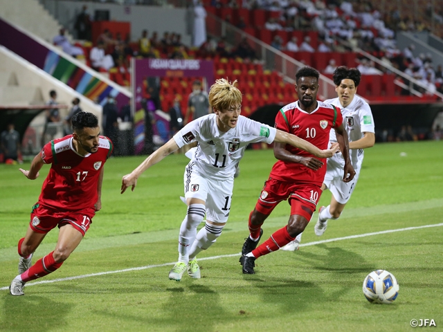 SAMURAI BLUE(日本代表)は11月16日(火)(日本時間17日未明)にマスカットで行われたFIFAワールドカップカタール2022のアジア最終予選(Road to Qatar)第6戦でオマーン代表と対戦。伊東純也選手(KRCヘンク)の2試合連続ゴールとなる試合終盤の得点で1-0と競り勝ち、4勝目を挙げてグループB2位へ浮上しました。