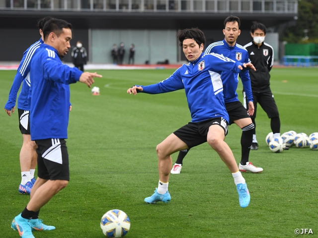 SAMURAI BLUE(日本代表)は3月27日(日)、FIFAワールドカップカタール2022のアジア最終予選(Road to Qatar)最終戦となるベトナム代表との対戦を2日後に控えて千葉県内で練習を実施。すでに予選突破を決めて、7連勝と約8か月後の本大会を意識して、選手たちは気合の入った姿勢で精力的に取り組んでいました。