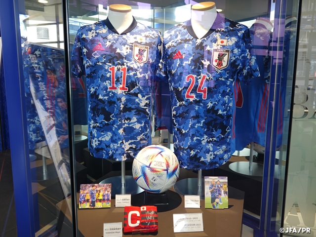 FIFAワールドカップカタール2022アジア最終予選を突破した後のSAMURAI BLUEの国際試合4連戦の激闘を振り返ることができる展示の数々です。あのブラジル代表のサイン入りユニフォームも注目!この機会にぜひご覧ください。