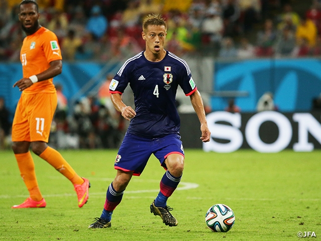 自身初めてのワールドカップとなった南アフリカ大会では【18番】を付けた本田だが、ブラジル大会では【4番】を背負った。2012年のキリンチャレンジカップ・アゼルバイジャン代表戦後、与えられた番号ではなく、好きな番号を付けたかったという理由から【4番】を選んだことを明かしている。