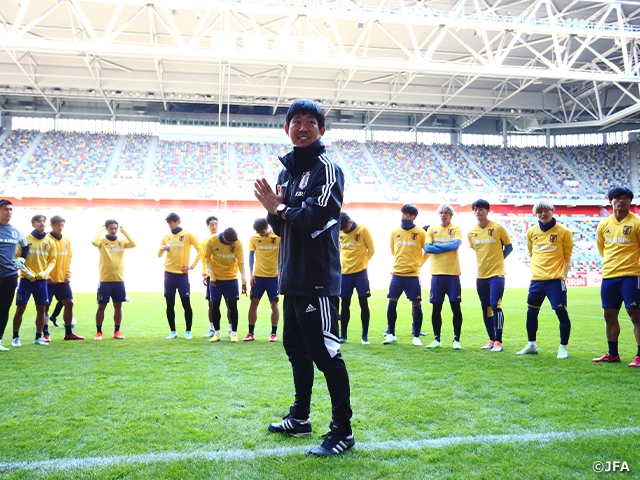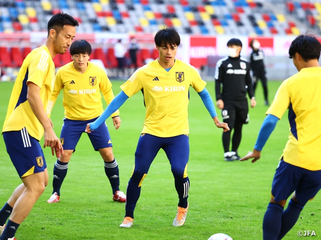 SAMURAI BLUEはこの日の午後、試合会場で公式練習に臨み、大半を非公開として最終調整を行いました。