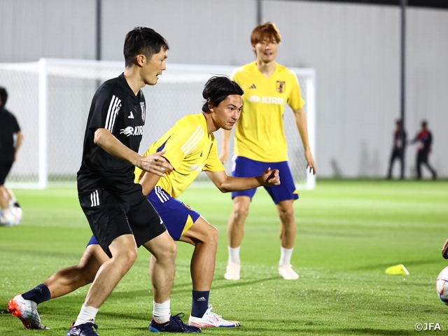 FIFAワールドカップカタール2022に出場するSAMURAI BLUE(日本代表)は11月15日(火)、ドーハ市内で練習5日目を迎えて新たに海外組7人がチームに合流。2日後にドバイで臨むカナダ代表との国際親善試合を控えて、大半を非公開にして練習を行いました。