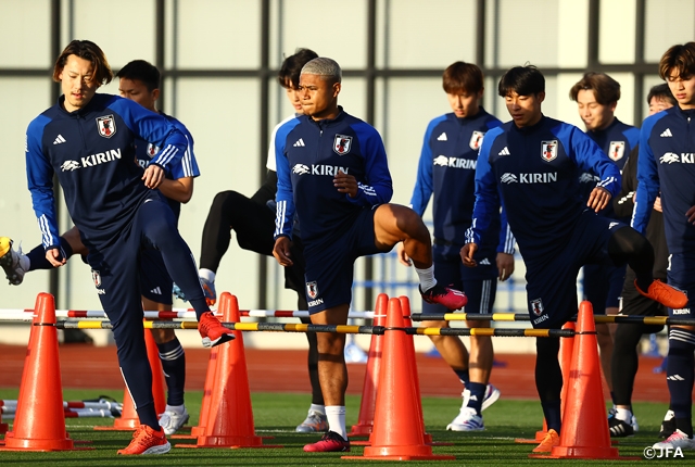 SAMURAI BLUE(日本代表)は3月20日(月)、ウルグアイ代表(24日(金)、東京・国立競技場)とコロンビア代表(28日(火)、大阪・ヨドコウ桜スタジアム)とのキリンチャレンジカップ2023の2連戦へ向けて千葉市内で練習をスタートしました。