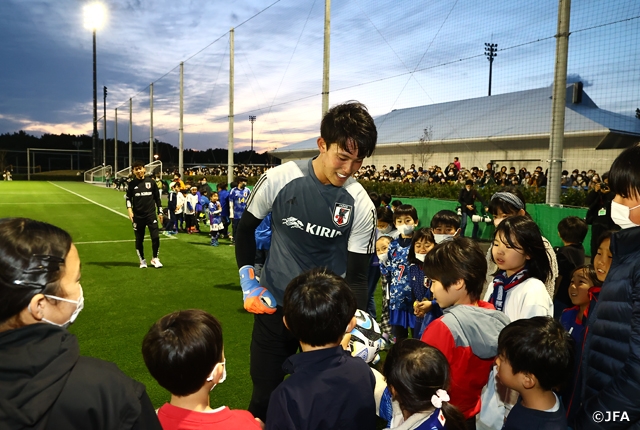 この日の練習には、JFA公式アプリ「JFA Passport」で練習見学に応募したファンが多く訪れて見学。練習後には選手たちが子どもたちとハイタッチで直接交流を図り、子どもたちから楽しそうな歓声が上がっていました。