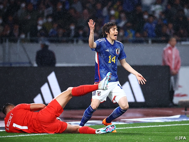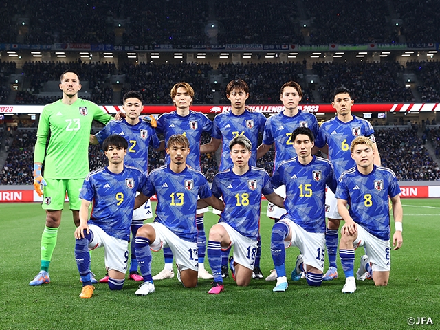 新型コロナウイルス感染症対策の緩和で全席での声出し応援が可能となった初の代表戦で、国立競技場を埋めた61,855人の観衆から「ニッポン」コールやチャントの大声援が響くなか、フレッシュな顔ぶれを加えた日本代表は積極的に試合を展開。前半相手に先制を許したものの、後半には選手交代を生かしカタール大会を彷彿とさせるような鋭い反撃を披露しました。