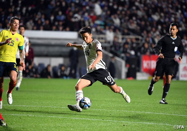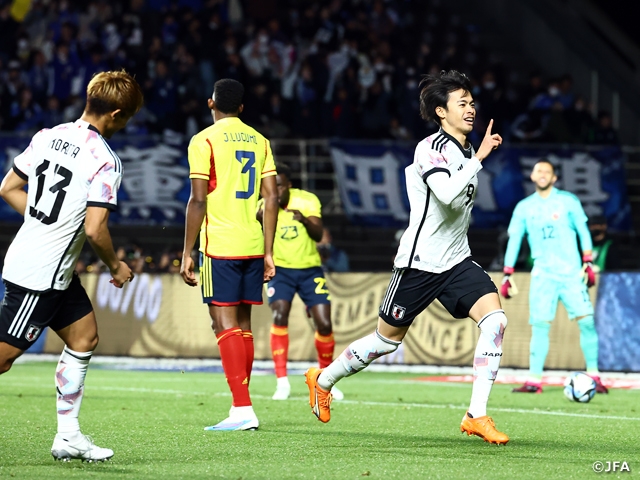 SAMURAI BLUE(日本代表)は3月28日(火)、大阪のヨドコウ桜スタジアムで行われたキリンチャレンジカップ2023でコロンビア代表と対戦。三笘薫選手(ブライトン・アンド・ホーヴ・アルビオンFC)のゴールで前半早々に先制したものの、2失点を喫して1-2で敗れ、FIFAワールドカップカタール2022後の初勝利はお預けとなりました。