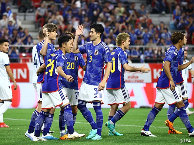 SAMURAI BLUE(日本代表)は6月15日(木)、愛知県の豊田スタジアムで行われたキリンチャレンジカップ2023でエルサルバドル代表と対戦。序盤で退場者を出した相手に前半で4ゴールを決めて6-0の快勝を収め、FIFAワールドカップカタール2022後初勝利を挙げました。