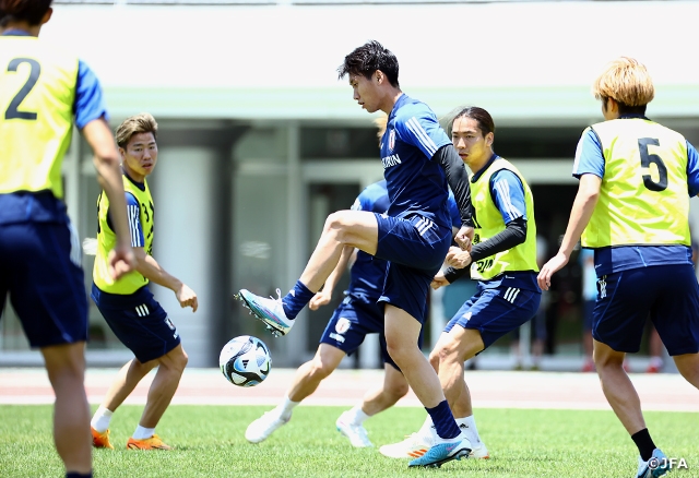 SAMURAI BLUE(日本代表)は6月16日(金)、キリンチャレンジカップ2023エルサルバドル代表戦から一夜明けて、第2戦のペルー代表戦(20日、大阪・パナソニック スタジアム 吹田)へ向けて愛知県豊田市内で調整を開始しました。