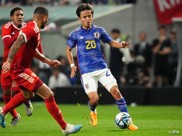 SAMURAI BLUE(日本代表)は6月20日(火)、大阪のパナソニック スタジアム 吹田で行われたキリンチャレンジカップ2023でペルー代表と対戦し、伊藤洋輝選手(VfBシュツットガルト)の代表初ゴールでの先制など4得点を奪う攻撃で4-1の勝利を収めました。