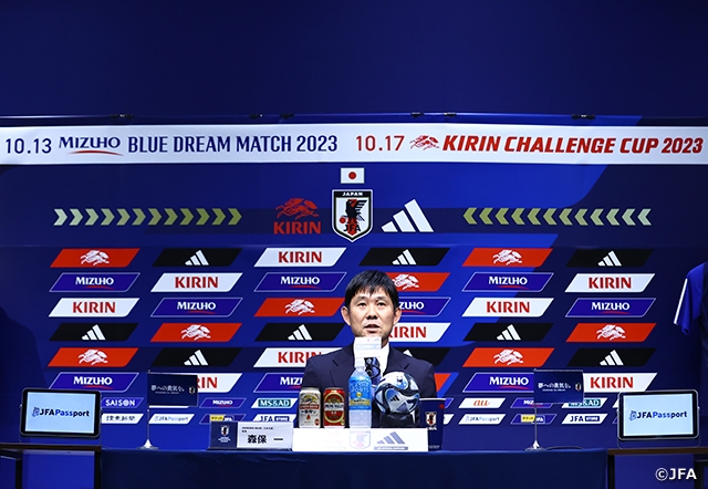 これまで皆さんの応援のおかげで思い切ってチャレンジして戦ってくることができました。この10月の強化試合でも、カナダ、チュニジアというワールドカップ出場経験のある、力のある国との対戦で、応援してくれている方々に勝って喜んでいただけるように試合をしたいと思います。11月からワールドカップ北中米大会のアジア予選が始まり、年明けにはアジアカップというアジアの頂点を目指す戦いが待っています。個々のレベルアップ、連係連動が深まり、チーム戦術の幅を広げてより浸透していけるように、この2試合でベストを尽くして戦いたい。
