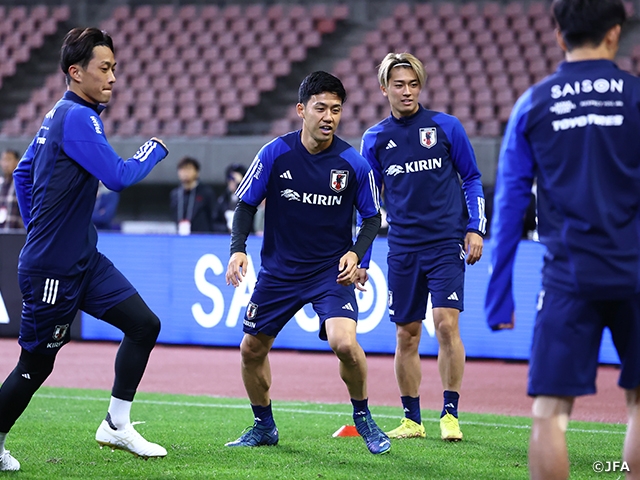 チームはこの日夕方から試合会場で大半を非公開にして調整。報道陣に公開された冒頭15分では、フィールドプレーヤーはランニングやストレッチ、体幹トレーニング、ボール回しなどで体を動かし、GK陣は距離や角度の違うシュートのセービングなどに取り組んでいました。