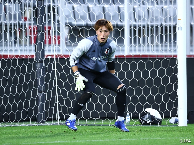 日々の練習を重ねる中で自分自身の強みも出せていると思いますし、ドイツ戦など、いろんなプレーをするなかでまずは結果を出せたかと思います。カナダ戦のPKは流れ的にも本当に大事な1つのシーンだったので、自業自得というか自分で与えてしまったとはいえ、防ぐことができて存在感を示せたかなと思います。個人的にも相手に対してどういうプレーの選択をしなければいけないか、新しく習得できたと思います。浅野選手がスピードのある選手ということは分かっていますし、裏に落として走らせるプレーを引き出すのももちろん大事ですが、ゴールキックや流れのなかで、(相手を)引き付けながらどこまでリスクを負ってつなぐのか。ドイツ戦ではつなぎにこだわり過ぎて失点シーンを招いてしまったので、今回は少しロングボールを使いながら修正しなければと思っていました。流れのなかでうまく対応できたと思います。チュニジアには前回対戦して負けています。ワールドカップにも出て個の能力は高いので、そういうところは警戒しないといけないですし、ガンバ大阪のジェバリ選手ともJリーグで対戦していますが、収める能力も高いのでそこは警戒しないといけないと思っています。