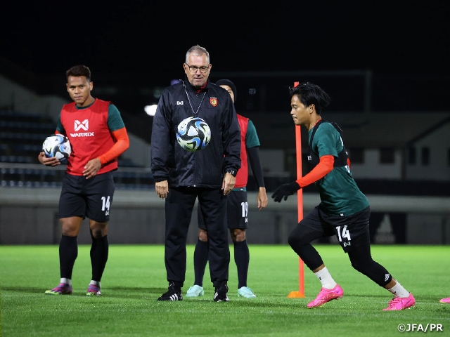 11月16日(火)に大阪府のパナソニック スタジアム 吹田で開催されるFIFAワールドカップ26アジア2次予選兼AFCアジアカップサウジアラビア2027予選でSAMURAI BLUE(日本代表)と対戦するミャンマー代表が、11月14日(火)に来日しました。