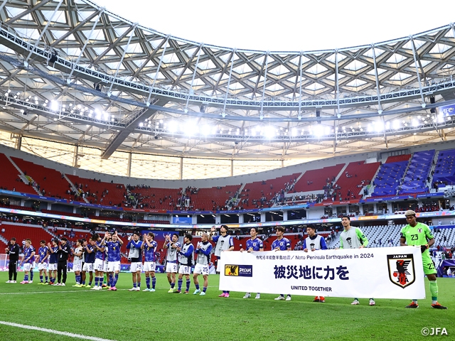 なお、日本はこの試合には先日の能登半島地震で亡くなられた方への哀悼の意を表して腕に喪章を巻いて臨み、試合終了後には「被災地に力を」と書かれたバナーを選手が持ってピッチを一周。被災地へ励ましのメッセージを送りました。