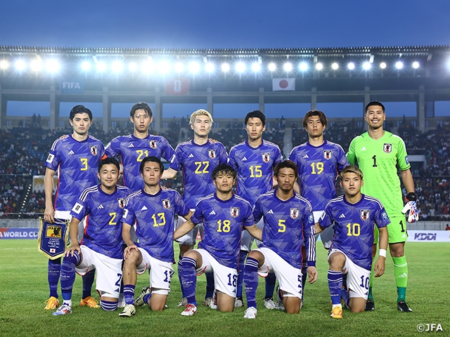 最前線の1トップには小川選手を、トップ下には鎌田大地選手(SSラツィオ)と堂安選手を配置し、中盤のボランチには守田英正選手(スポルティングCP)と旗手怜央選手(セルティック)、左右のウィングバックに中村選手と菅原由勢選手(AZアルクマール)を起用。最終ラインは右から橋岡大樹選手(ルートン・タウン)、谷口彰悟選手(アル・ラヤン)、伊藤洋輝選手(VfBシュツットガルト)で3バックとし、ゴールマウスは前川黛也選手(ヴィッセル神戸)が守る新たな布陣にトライしました。