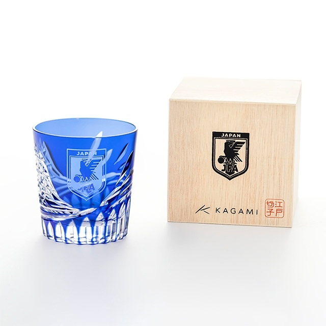 日本代表のエンブレムと江戸切子の伝統的な文様を組み合わせました。