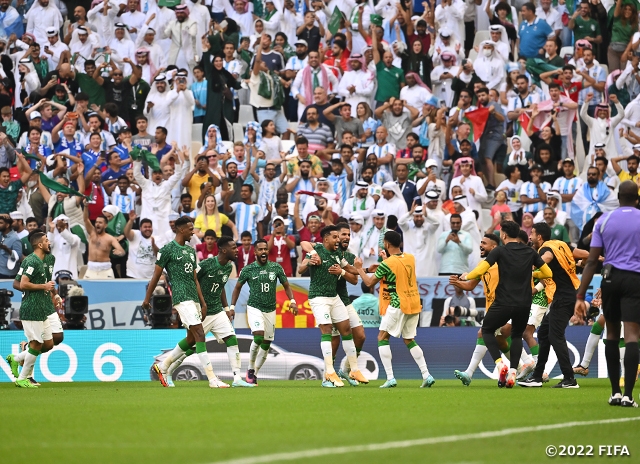 ワールドカップの本大会では、何度か印象的な戦いを披露している。初出場は1994年のアメリカ大会。グループステージ第3戦のベルギー戦では、サイード・オワイランが約60メートルをドリブルで独走し、相手選手を次々とかわして決勝点。この勝利を含めグループステージを2勝1敗、2位で突破し、いきなりのラウンド16進出を果たした。2022年のカタール大会はグループステージ敗退に終わったが、初戦でアルゼンチンに先制を許しながらも後半に逆転。世界王者となる強豪から2-1の勝利をもぎ取る快挙で、世界を驚かせた。
