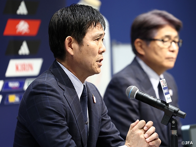 我々はすでに出場権獲得していますが、この6月の2試合もこれまで通り、1戦1戦勝利目指してチーム一丸となって全力で戦い抜きたい。そして、これから先のことも見据えてチーム力を上げるためにも、勝利を目指すことにこだわりながら、選手一人ひとりの成長がチームの成長になるように、チームとしての選手層の幅をより厚く強固にして、さらなる成長につなげていけるような戦いにしたいと考えています。ここまで予選で結果を出すために頑張ってくれて今回も選ばれておかしくない選手たちがいます。年間の出場試合数の多さを考えて今回は招集しないことにしましたが、彼らの頑張りがあったからこそ、最強の日本をつくるために、これからの日本サッカーの成長に向けたチーム編成ができました。そのことをうれしく思っています。