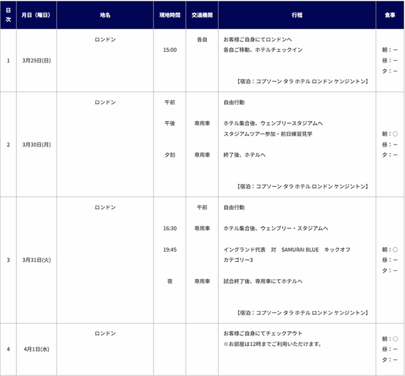 【販売概要】SAMURAI BLUE国際親善試合 日本サッカー協会オフィシャル観戦ツアー(3/29(日)出発)