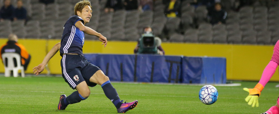 そして前半終了間際、清武選手のシュートがエリア内で相手のハンドを誘ってPKを獲得。これを清武選手自身が冷静に決めて先制に成功すると、後半もペースを譲らずに次々にチャンスを創出。途中からは香川選手、本田選手もピッチに立ち存在感を放つと、80分には本田選手の縦パスに抜け出した長友佑都選手のクロスを、香川選手が流し、原口選手が4試合連続となるゴールを突き刺して、点差を2点に広げた。