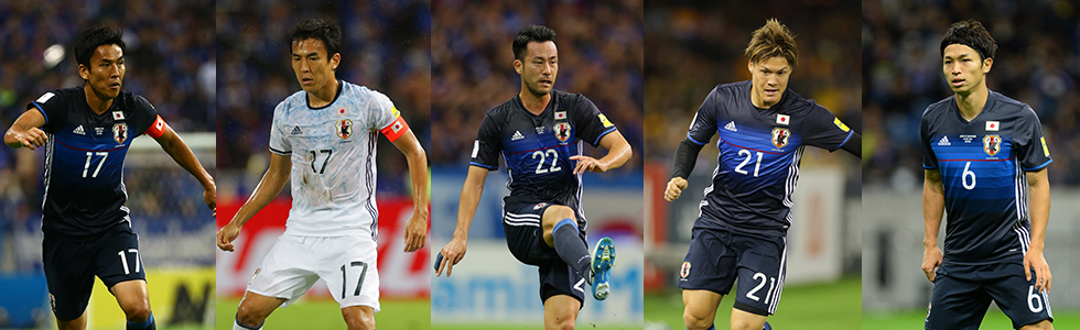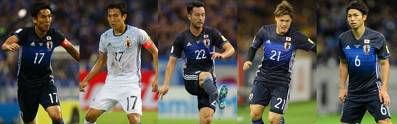 | 長谷部誠選手 | 65本 | 長谷部誠選手 | 77本 | 吉田麻也選手 | 79本 | 酒井高徳選手 | 36本 | 森重真人選手 | 55本 |