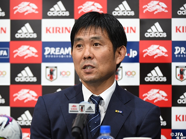 カタールのワールドカップへ向けて、いよいよ最終予選を戦います。厳しい戦いの連続になると思いますが、一戦一戦、最善の準備をして全力で勝利を目指して戦い、厳しい予選を必ず突破して本大会へ駒を進めるように、チーム一丸となって頑張ります。勝利できるようにしっかり対戦相手を分析して対応し、選手の持っている力を100%発揮できるように試合へ向けて準備したい。今、コロナ禍で多くの地域で緊急事態宣言下にあり、制限がある中で国民のみなさんが大変な思いをしながら過ごされています。勝利で喜んでもらい、選手の頑張りを見て励ましのエールとなるような戦いをしたいと思っています。