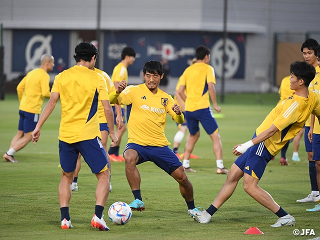 SAMURAI BLUE(日本代表)は11月21日(月)、FIFAワールドカップカタール2022初戦のドイツ代表戦を2日後に控えて、選手26人全員が揃ってドーハ市内の本拠地で3日連続での非公開練習に臨みました。