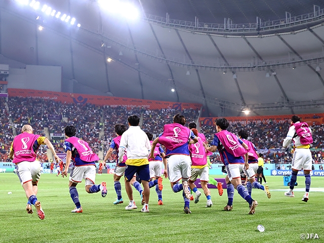 SAMURAI BLUE(日本代表)は12月1日(木)、FIFAワールドカップカタール2022のグループステージ最終戦でスペイン代表とカリファ・インターナショナル・スタジアムで対戦。堂安律選手(SCフライブルク)と田中碧選手(フォルトゥナ・デュッセルドルフ)が後半早々に得点して2-1の逆転勝利を収め、2勝1敗でグループEを1位で突破。2大会連続で通算4度目となる16強進出を決めました。
