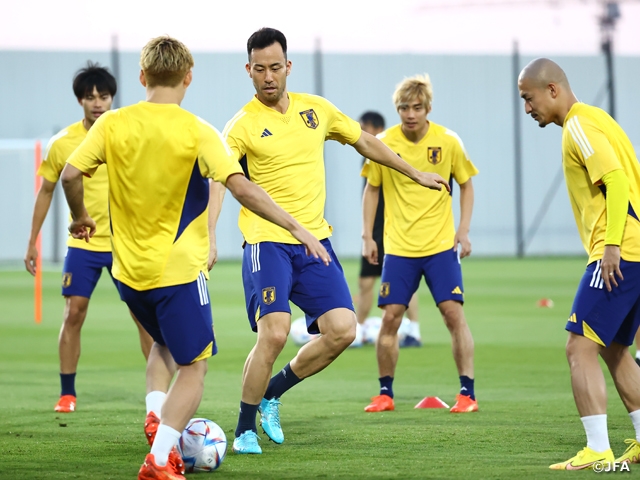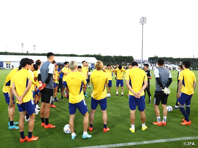 GK3選手も近距離からのシュートブロックや左右からのクロスボールのセービングなど、基本的なトレーニングで動きを確認しました。なお、板倉滉選手(ボルシアMG)は累積警告のためクロアチア戦は出場停止です。