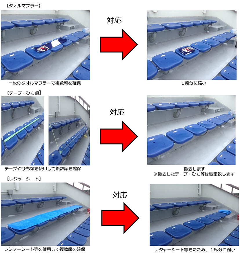 ※主催者が過剰な場所・席取りと判断した場合、座席に置いてある敷物等を撤去または縮小します。