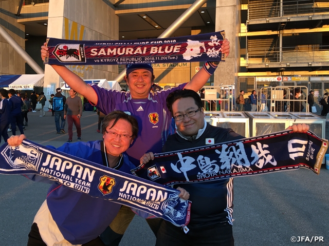 11月20日(火)、愛知/豊田スタジアムでSAMURAI BLUE(日本代表) 今年最後の試合となる、キリンチャレンジカップ2018キルギス代表戦が行われました。試合当日応援に来ていたサポーターの方々に、この試合や今後のSAMURAI BLUEに期待することをお聞きしました。