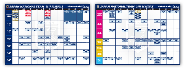 各年代男女代表チームの2019年度スケジュール詳細は下記PDFをご覧ください。