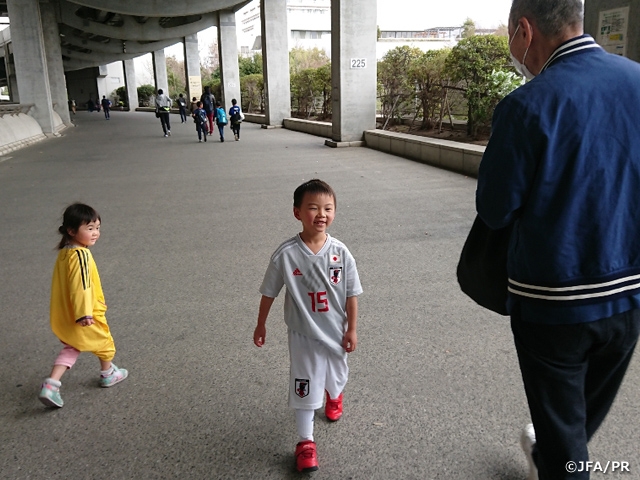 息子(4歳)、娘(3歳)はサッカーが大好きで朝から晩までサッカー三昧。将来の夢はもちろん日本代表選手になることです。そんな子どもたちと、3月19日に69回目の誕生日を迎える祖父へのプレゼントとして、親子三代で初めてのサッカー観戦です。
