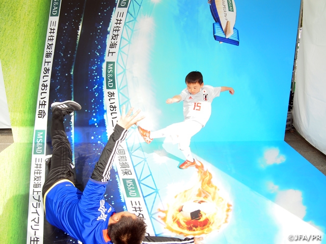 MS&ADブースにて、「ファイアーシュート!」と、トリックフォトを楽しんだら、日本代表クリアファイルももらえました!