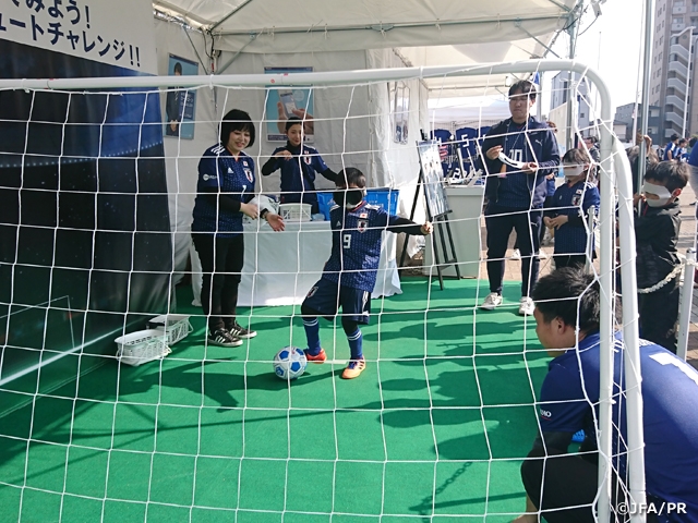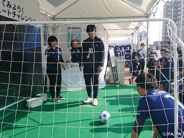 人気だったのがブラインドサッカーで、並んでいるサポーター達と一緒に応援をしたり、順番待ちをしている時もとても盛り上がりました!ここでもサポーターはみんな一致団結しています!