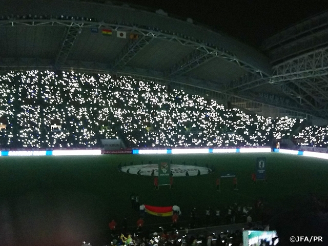 選手入場時は会場の照明が消され、サポーターのスマホライト点灯の演出はとてもきれいで感激しました!このような演出もテレビでは見ることがないので現地観戦ならでは!