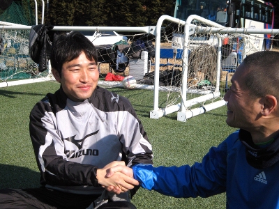一番初めは、大学生の時に、地域の少年サッカーチームに、ボランティアで教えに行っていました。大学院生になるにあたって、その子たちが中学生になってどうなっているかなって見に行ったとき。ちょうど2月ぐらいで、グラウンドは霜が降りてグチョグチョで。4時から練習が始まって、4時半には日が暮れちゃって練習終わっちゃうような時期。