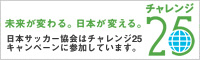 日本サッカー協会(JFA)は2005年6月より、地球温暖化防止国民運動「チーム・マイナス6%」に参加し、各種環境活動を展開してきました。同活動は2010年1月14日から「チャレンジ25キャンペーン」へと生まれ変わりましたが、JFAは引き続きその趣旨に賛同し、本キャンペーンを推進していく考えです。