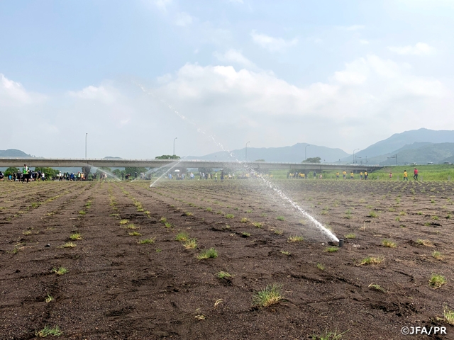 ・JFAがグリーンプロジェクトの一環で推進する「ポット苗方式」による芝生化を実施(芝生はティフトン419。冬期はペレニアルライグラスを使用したオーバーシードを実施予定)甲佐町と協力し維持管理を実施し、10月のグラウンド供用開始を目指す