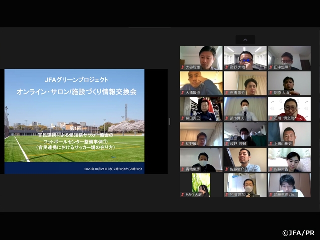 施設面の発展・充実により、サッカー・スポーツを楽しむ環境づくりを目指すJFAグリーンプロジェクトの一環として、10月21日(水)と11月4日(水)に第1回、第2回のオンラインサロン/施設づくり情報交換会を実施しました。
