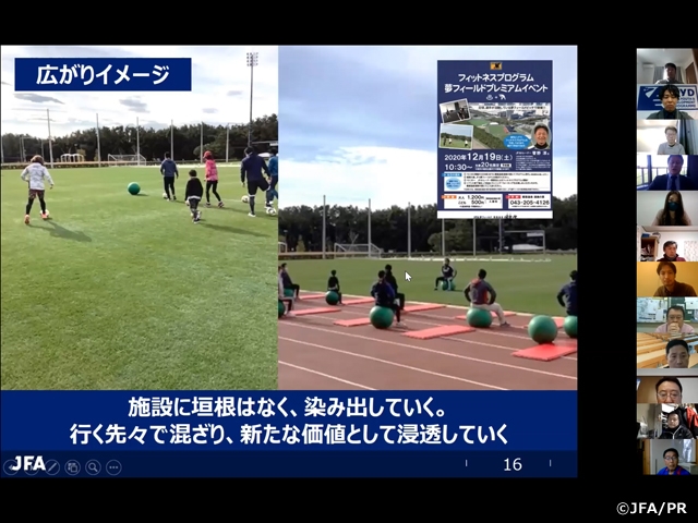 JFAグリーンプロジェクトは、地域のスポーツ施設を発展・充実させることにより、サッカー・スポーツを楽しむ環境づくりに取り組んでいます。その一環として都道府県や市区町村のサッカー協会、自治体、クラブ、学校の関係者などを対象に、2020年10月よりオンラインサロン/施設づくり情報交換会を隔週で開催しており、1月20日、2月3日、2月17日に第6回~第8回を実施しました。