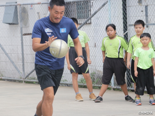 代表監督兼技術委員長という役職で活動をさせていただいておりますが、日々の代表、ユース代表チームの指導の他に、現地のサッカーレベル向上のために普及と指導者養成にも力を入れています。サッカーの普及では、これまで協会スタッフと共に、これまでの数々の活動を体系的にまとめ、先述のグラスルーツチャーター申請へと繋げることを心がけました。そのような業務と同時に、小学校への体育のサポートで小学生と一緒に汗を流すこともあります。子どもたちとサッカーを楽しむことで自分自身もサッカーの原点に触れることができ充実した時間となっています。